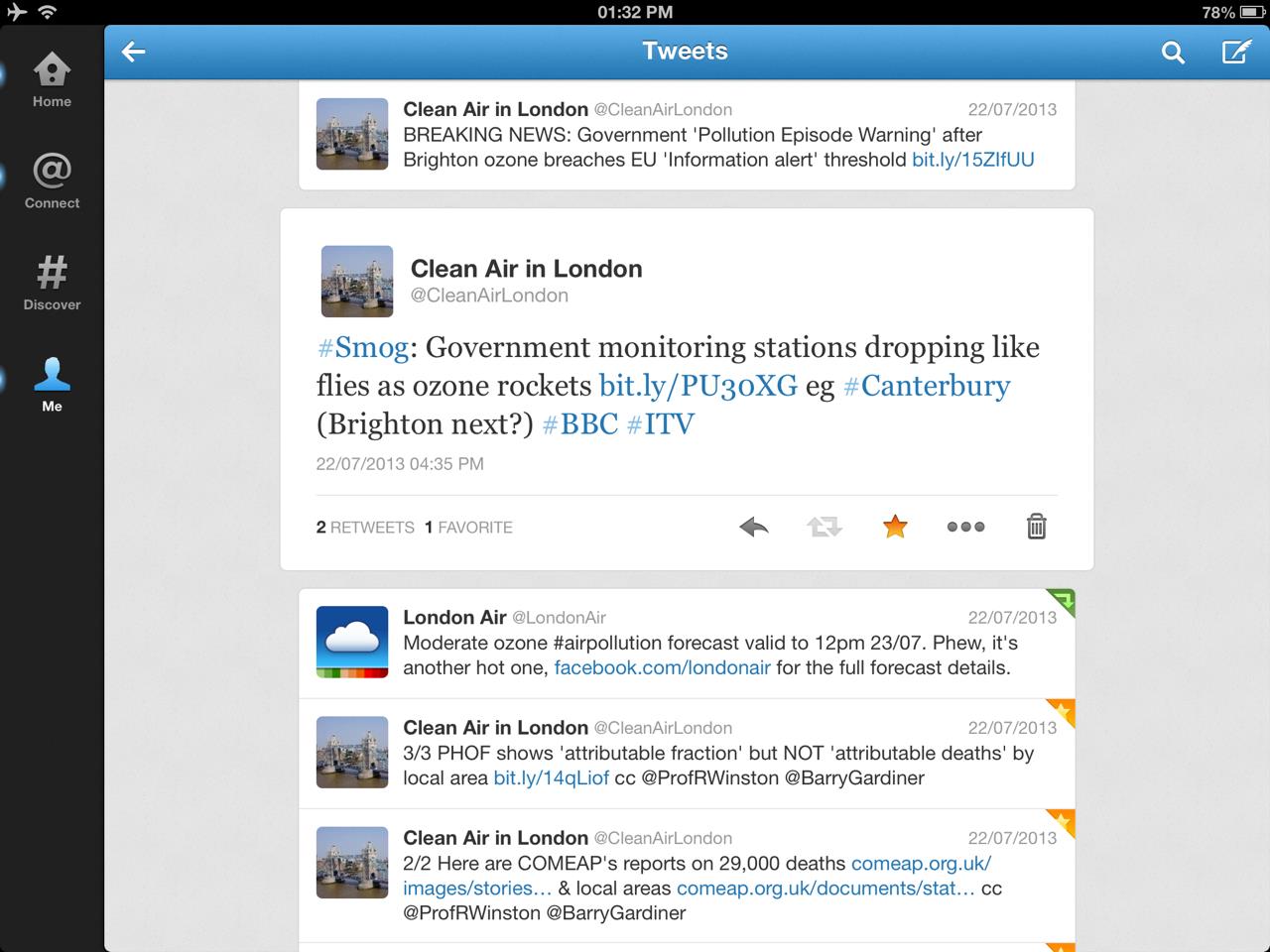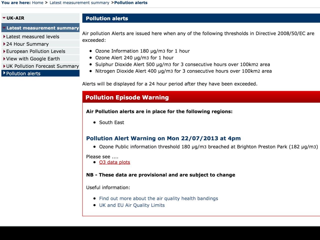 Minutes later the Government issued an ‘Information alert’ at about 1700 for Brighton after its monitor in Brighton Preston Park recorded average one-hour ozone of 182 mg/m3 at 1600 on 22 July 2013 (Exhibit 4).
